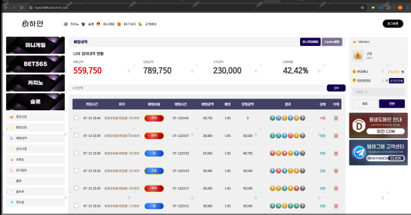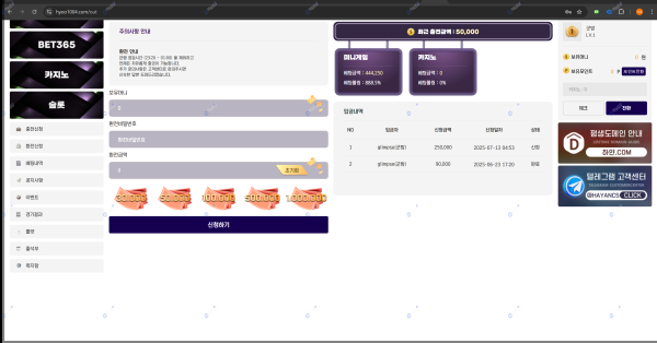깔끔한곳인가하고 충전하고 써봤더니 250도 아니고 25만원을 먹튀하려고 3일치 계좌보내라 양방한거다. 누명씌우면서 먹튀합니다. 양방을 어떤 멍청한놈이 롤링 다 돌리고도 계속 하고있습니까 5만원 충전해가지고 하면할수록 손해인데 그날따라 적중률 좋더라니 재수가없네요. 검색해보니 제글말고도 먹튀건 또 있네요. 입출금내역 보내줘봐야 우기면 답도없습니다. 어차피 돈줄마음도 없는데. |